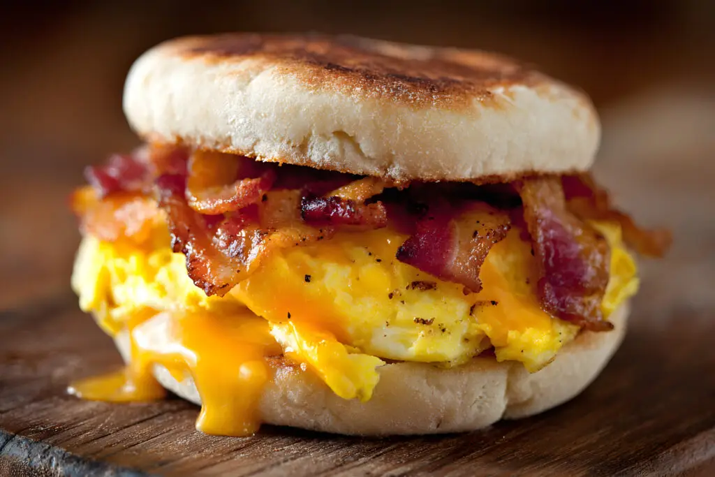 Egg, bacon & cheese, English muffin, spiced aioli